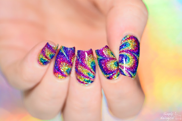 How's about these for some sparkly rainbow watermarble nails over holo involving NO ACTUAL WATERMARBLING? We all know how much I hate that shit. It's pretty much my life mission to find all the watermarble cheats in the land. This one appears most promising so far and it's super easy. Plus the way the cheat is designed it actually begs to be put over holo! Check out the video tutorial to see how it all goes down.